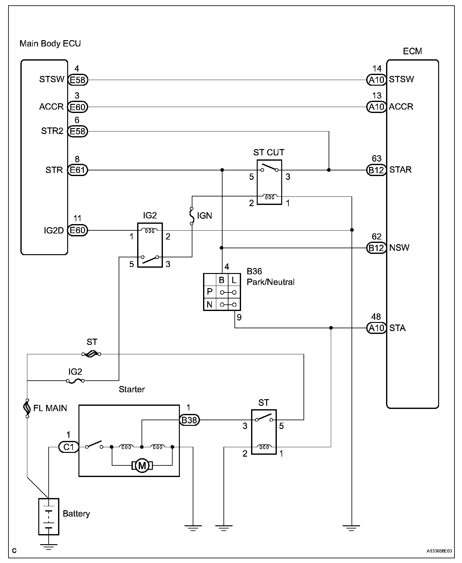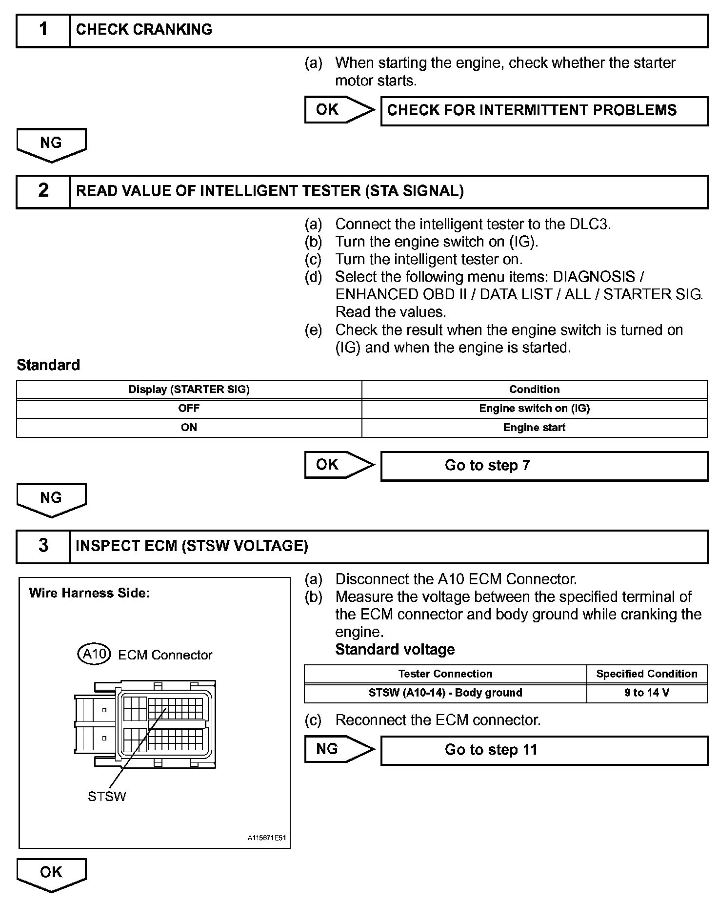 When the engine is cranking, the starter operation signal is sent to the ECM's STA terminal.