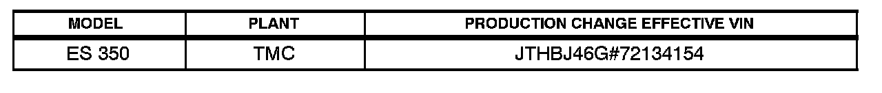 ^ 2007 model year ES 350 vehicles produced BEFORE the Production Change Effective VIN shown below.