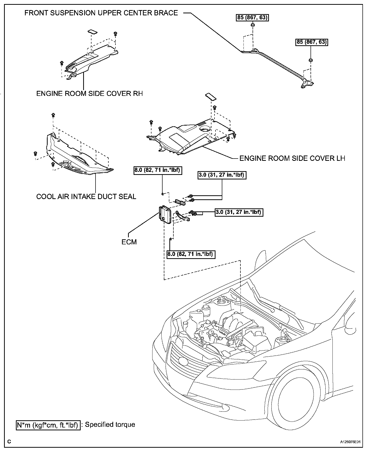 Torque: 8.0 N.m (82 kgf.cm, 71 in.lbf)