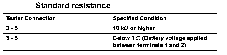 Using an ohmmeter, measure the resistance according to the value(s) in the table.