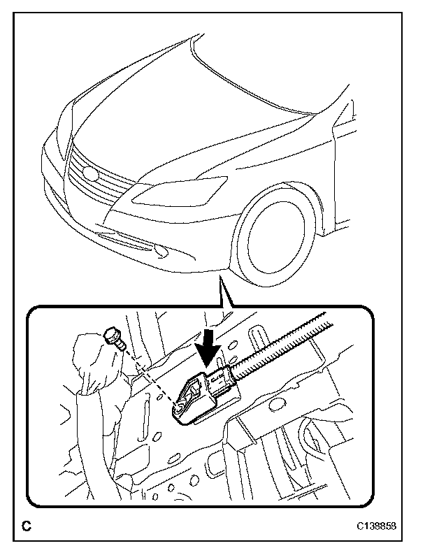- When installing the front airbag sensor, be careful that the SRS wiring does not interfere with other parts and that it is not pinched between other parts