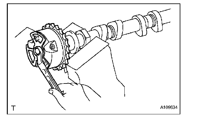 Tighten the flange bolt with the camshaft timing gear fixed.