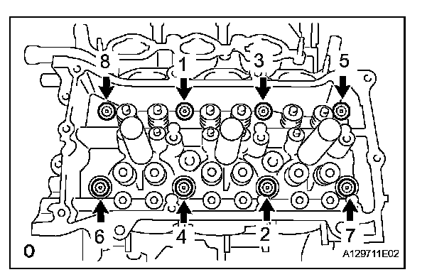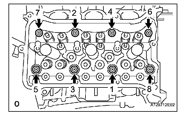 Temporarily tighten the 8 bolts in the order shown in the illustration.