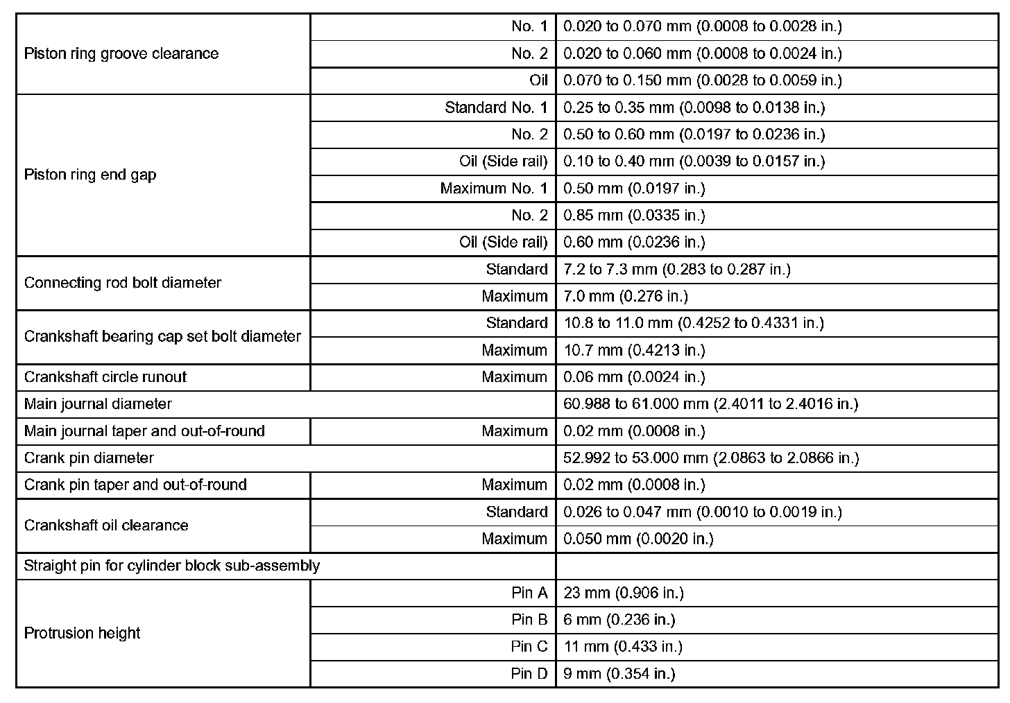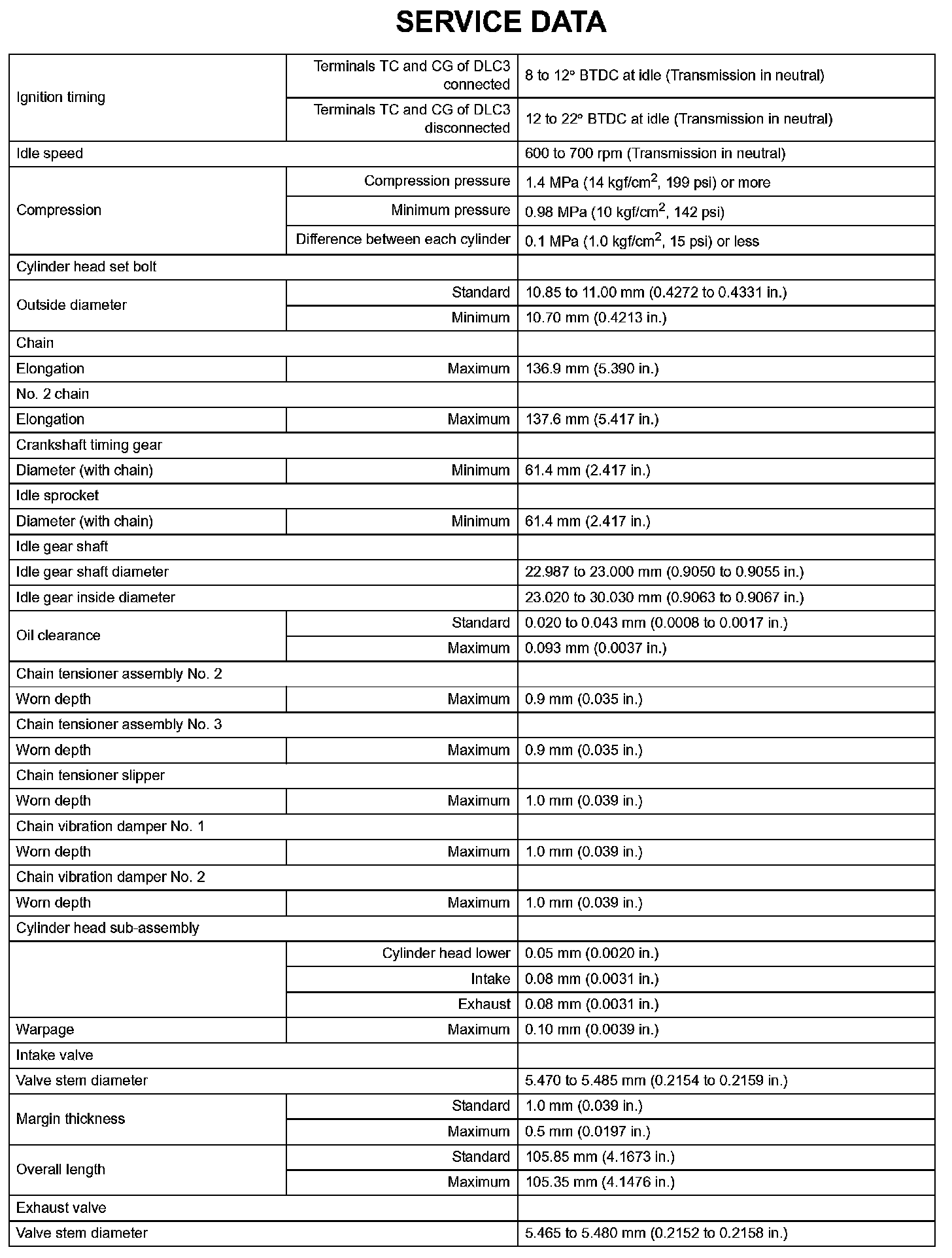 Engine Mechanical - Service Data (Part 1):