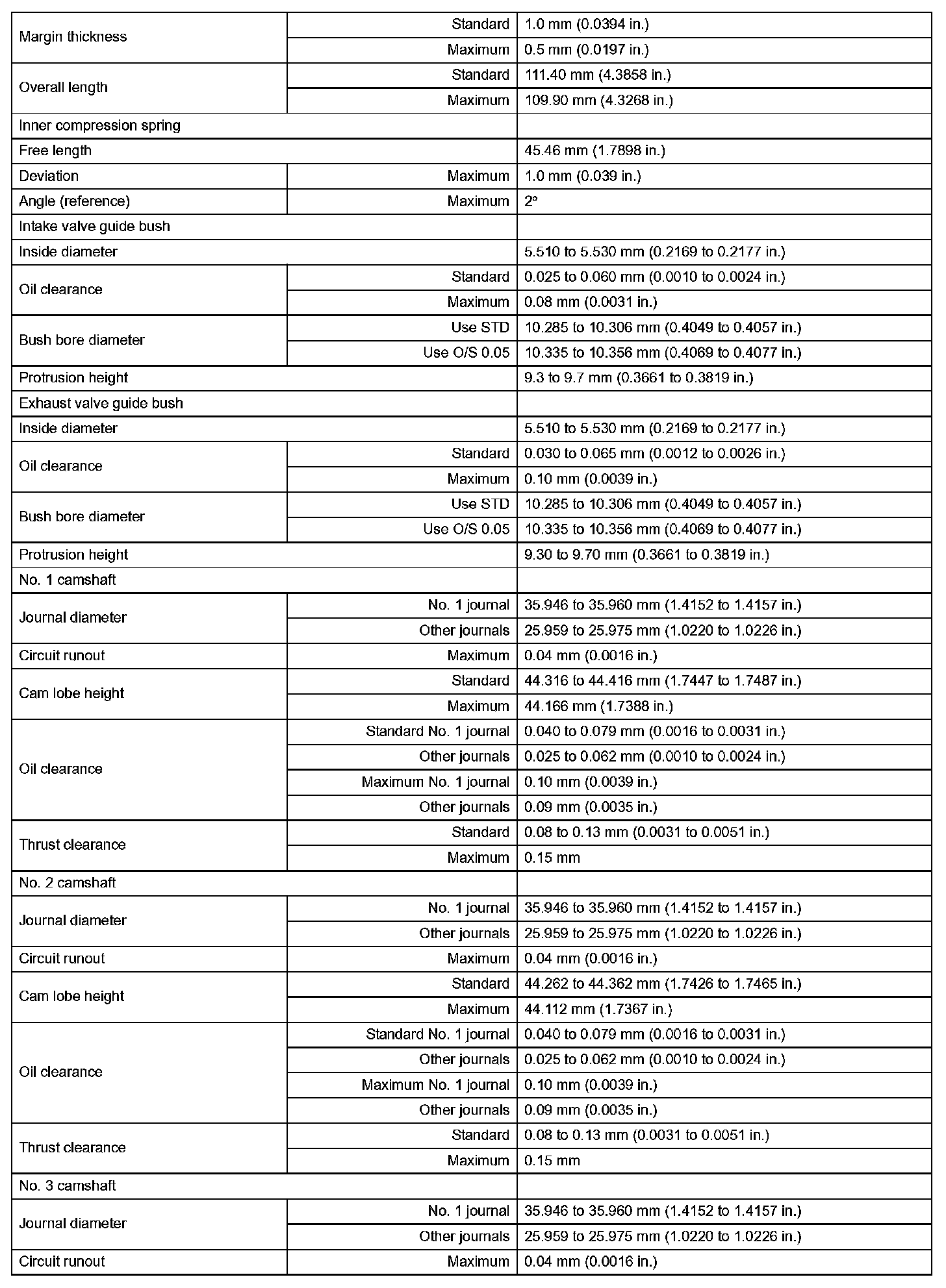 Engine Mechanical - Service Data (Part 2):