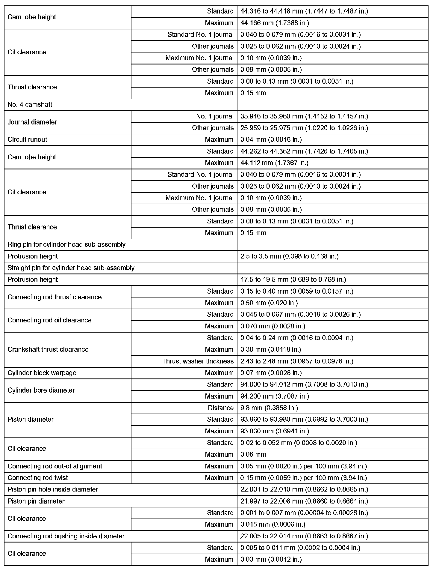 Engine Mechanical - Service Data (Part 4):