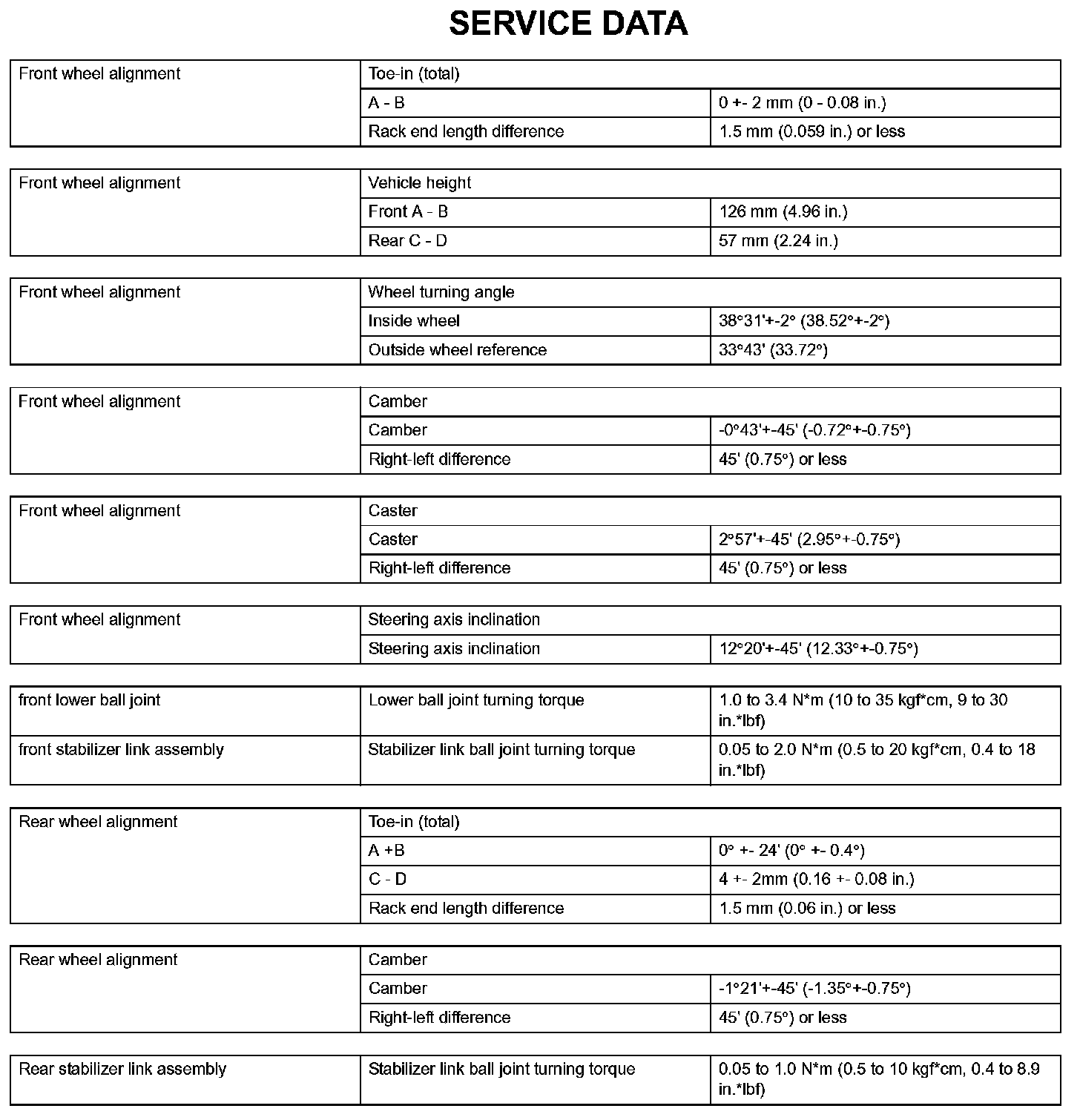 Suspension - Service Data: