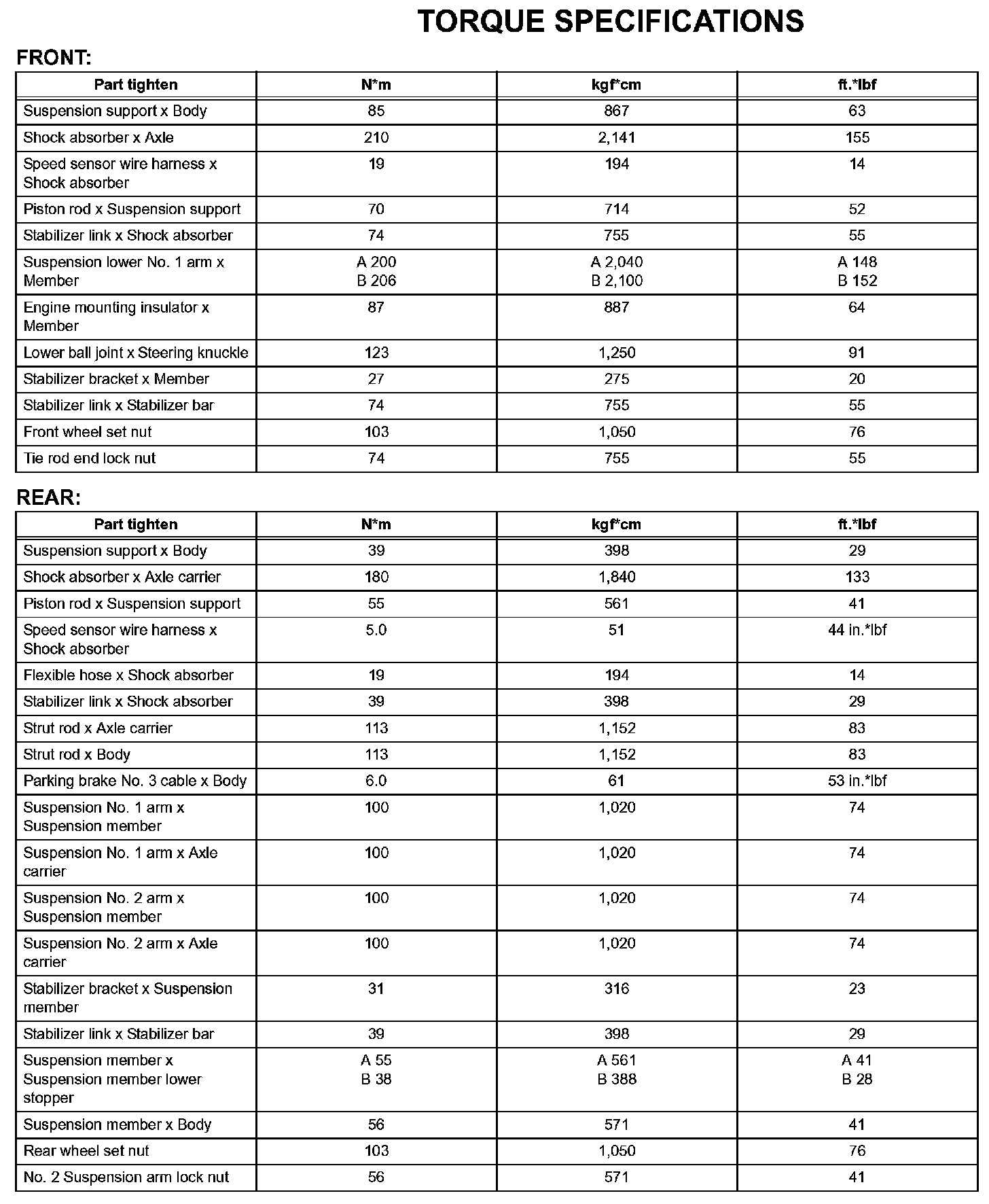 Suspension - Torque Specifications: