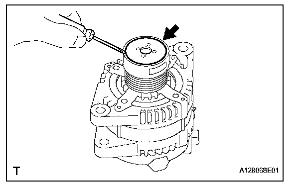 a. Using a screwdriver, remove the generator pulley cap.