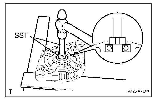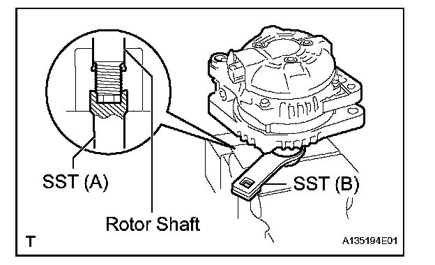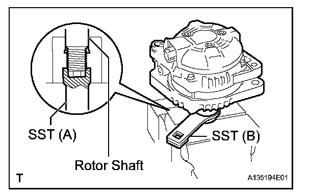 d. Place the rotor shaft end into SST (A).