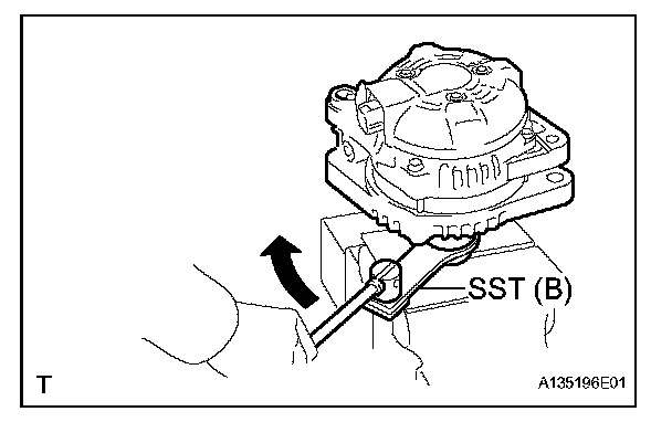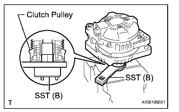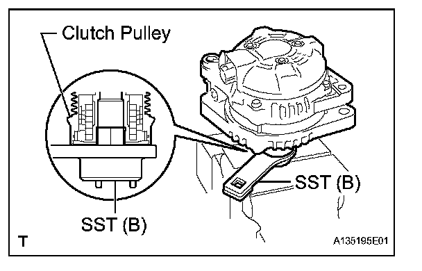 e. Fit SST (B) to the clutch pulley.