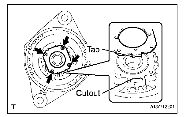 b. Fit the tabs on the retainer plate into the cutouts on the drive end frame to install the retainer plate.