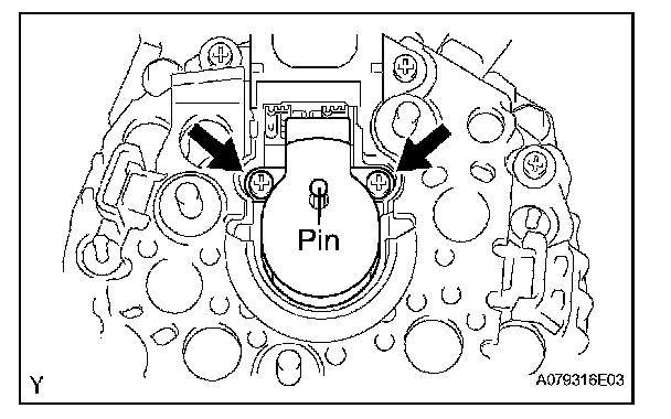 a. While pushing the 2 brushes into the generator brush holder assembly, insert a Dia.1.0 mm (0.039 in.) pin into the brush holder hole.