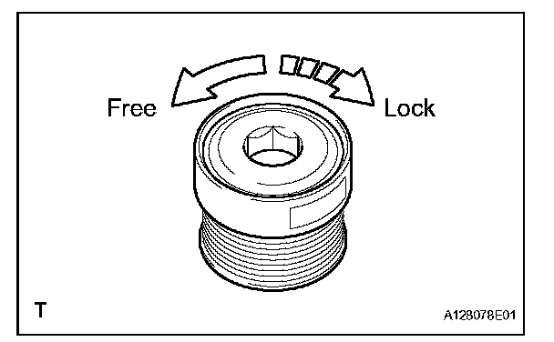 a. Hold the center of the pulley, and confirm that the outer ring turns counterclockwise and does not turn clockwise.