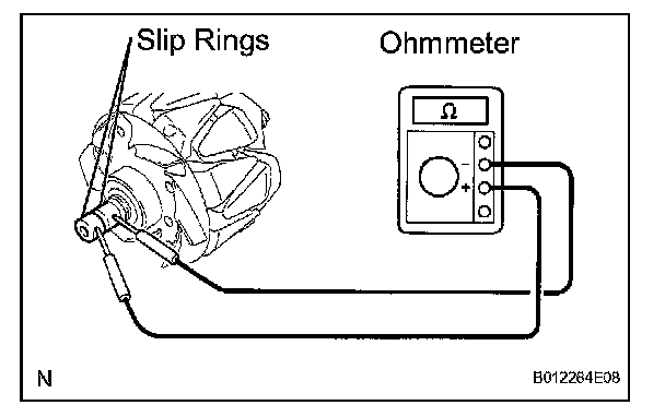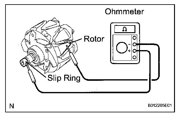 1. Using an ohmmeter, measure the resistance between the slip ring and rotor.
