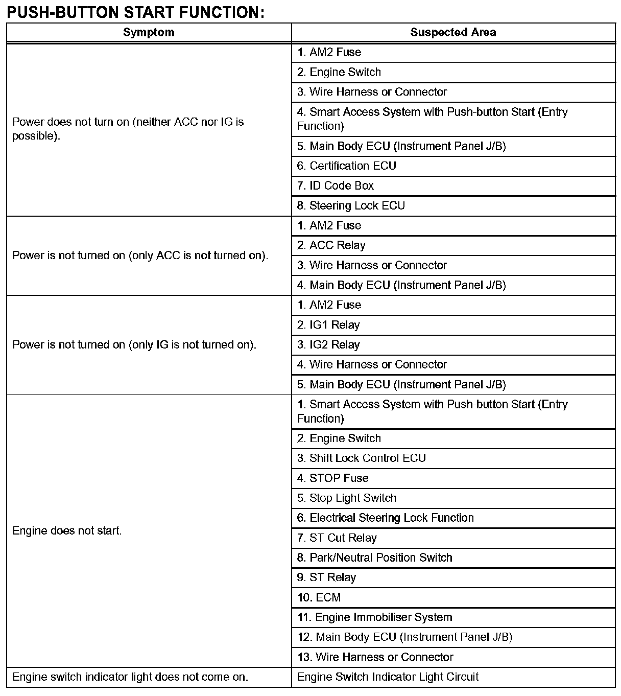 PROBLEM SYMPTOMS TABLEProblem Symptoms Table - Push-Button Start Function: