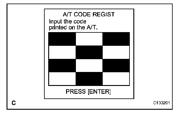 (2) Manually input the transaxle compensation code. The code is a 60-digit alphanumeric value imprinted on the QR label.
