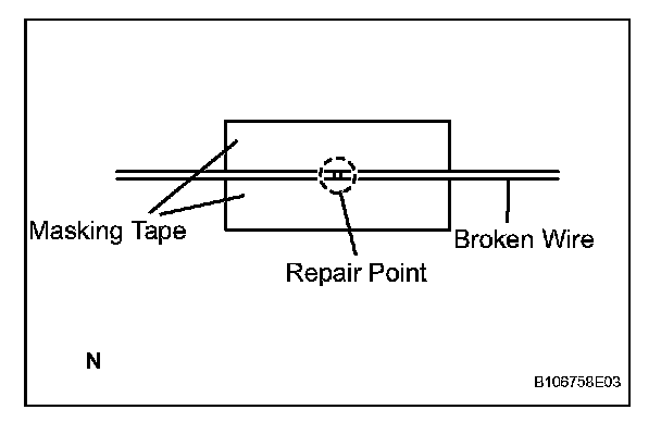 b. Place the masking tape along both sides of the wire.