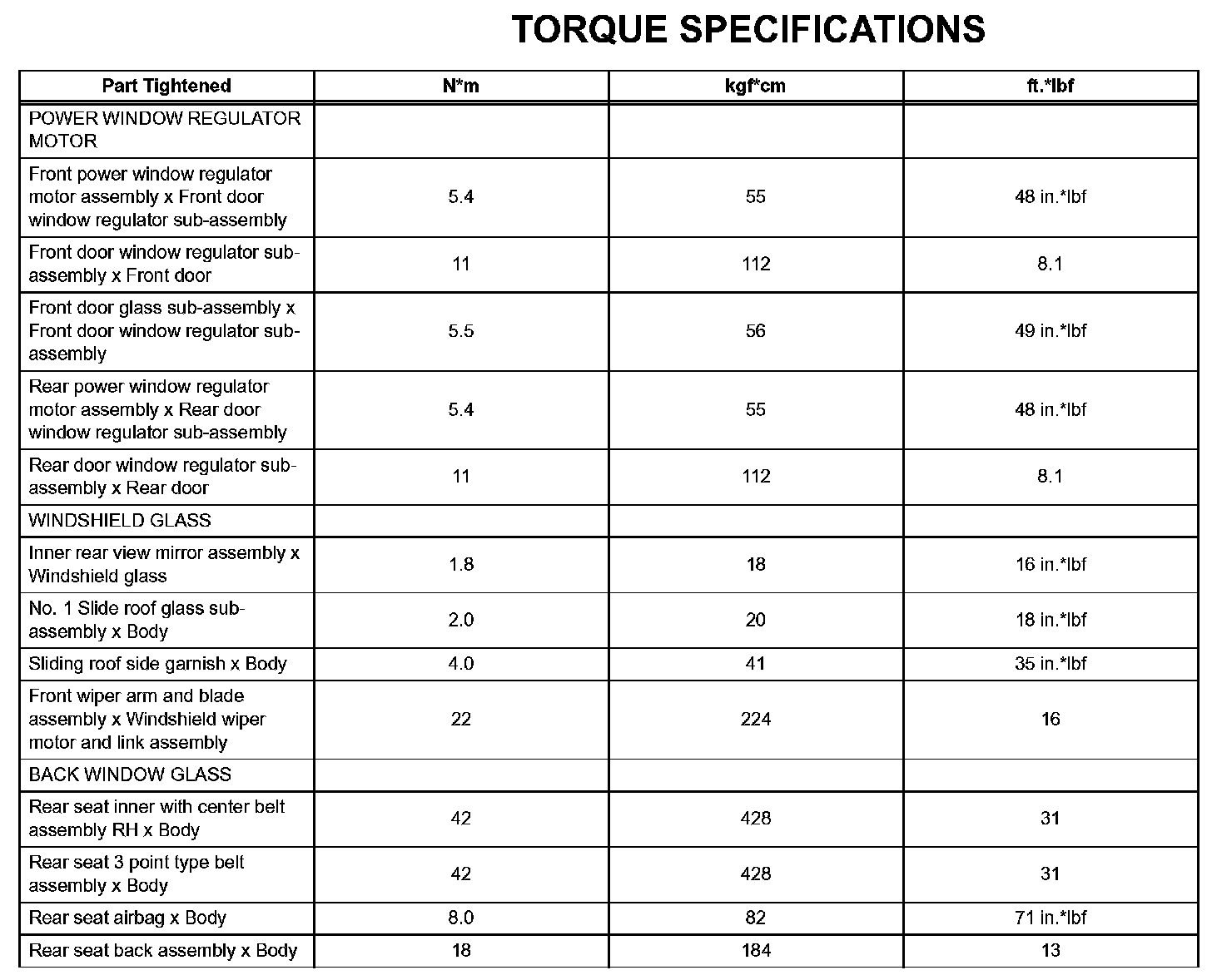 Windshield / Windowglass - Torque Specifications: