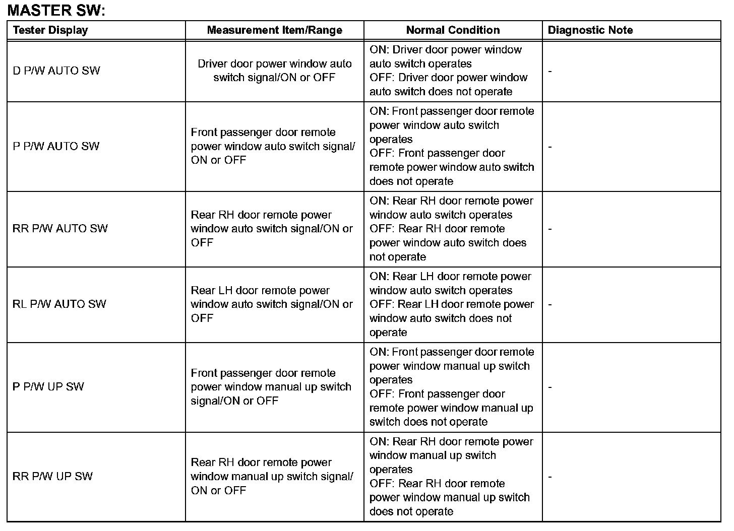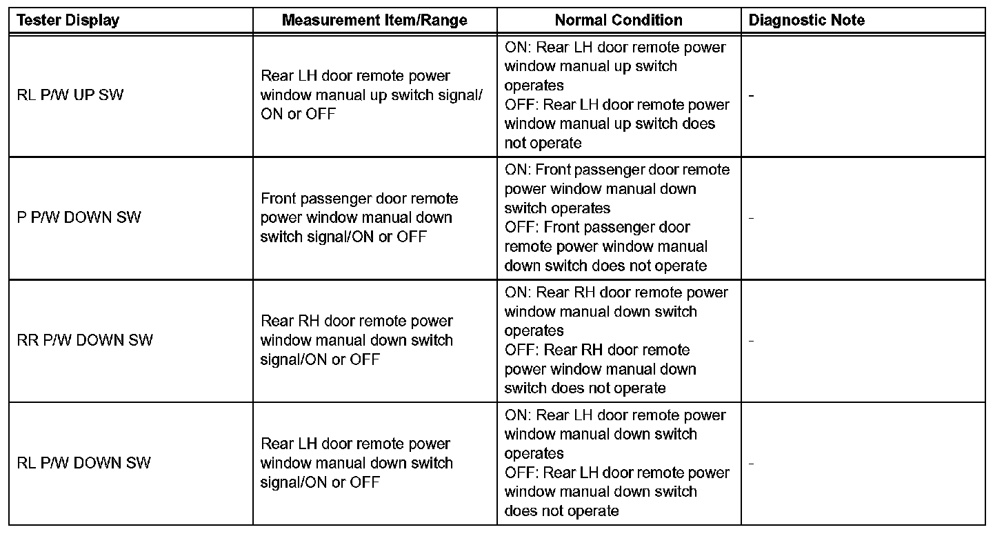 HINT: Using the DATA LIST displayed on the intelligent tester, the value of the switches, sensors, actuators, etc. can be read without part removal. Reading the DATA LIST as the first step in troubleshooting is one way to shorten the labor time.