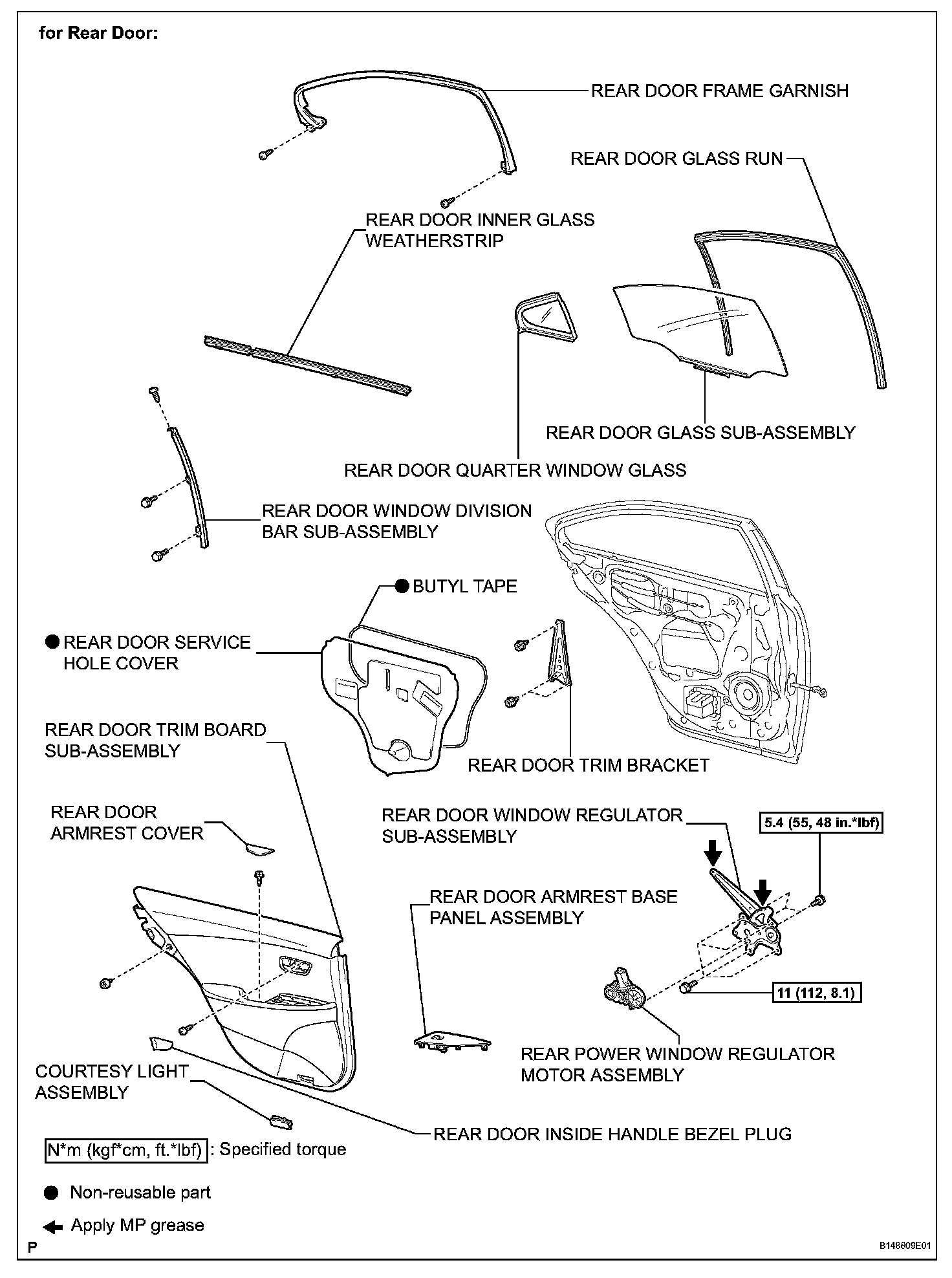 4. INSTALL REAR DOOR GLASS SUB-ASSEMBLY