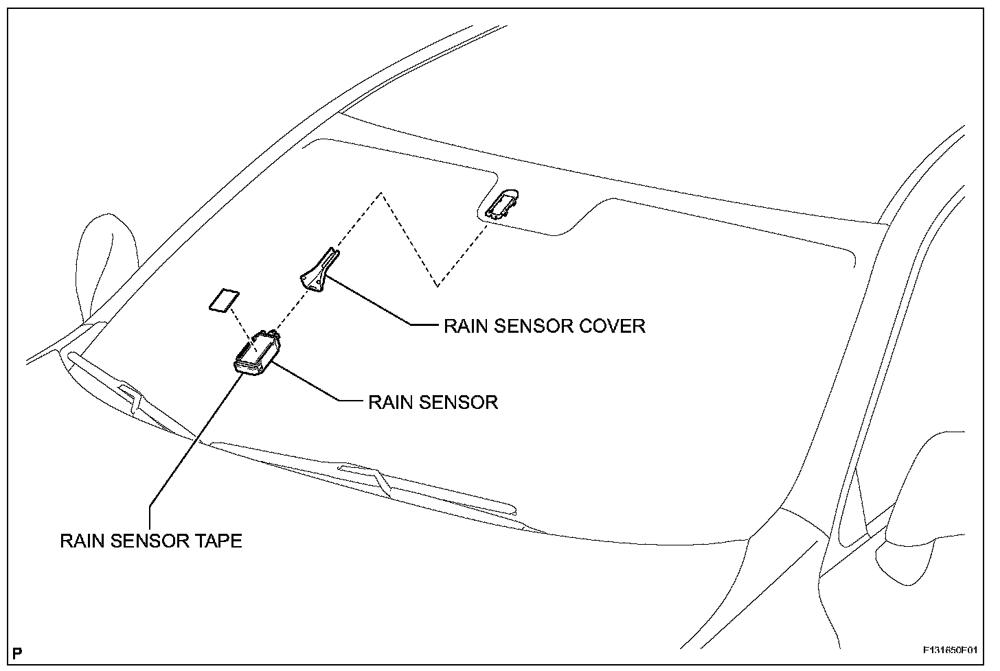 - Check that the old rain sensor tape is not left on the windshield glass. If the tape is still on the windshield glass, remove it before installing the rain sensor.