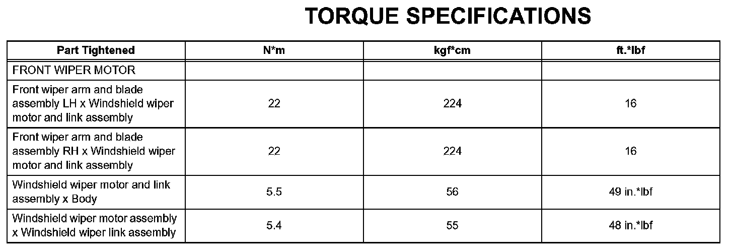 Wiper And Washer - Torque Specifications: