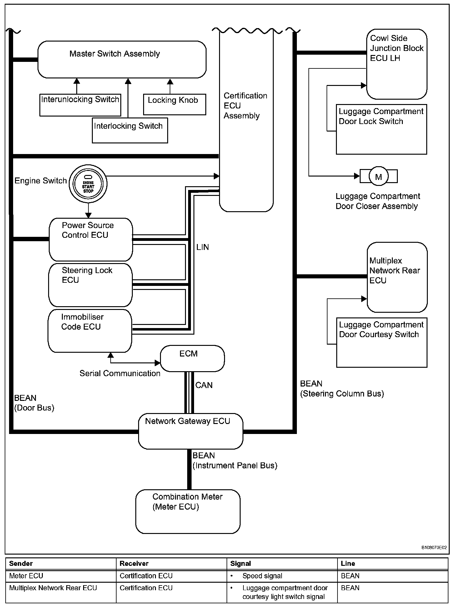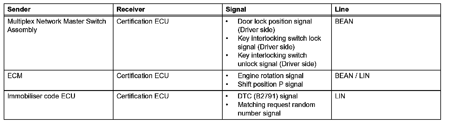 b. The certification ECU determines whether the key is located inside or outside of the cabin based on the information from a door oscillator and room oscillator. Then matching of the ID codes is performed.