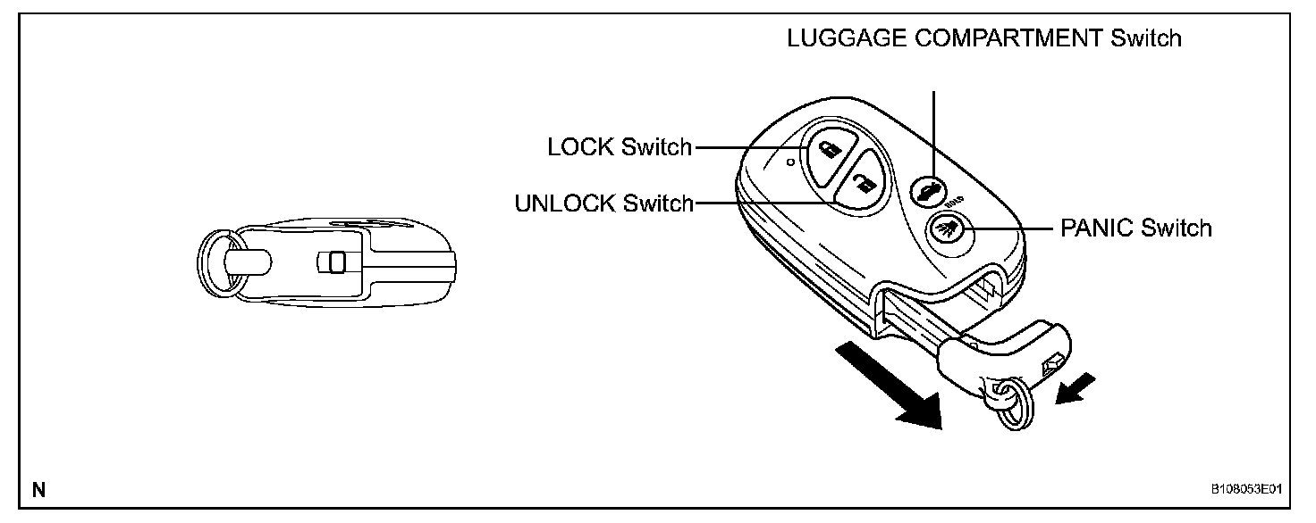 Push the LOCK/UNLOCK/PANIC/LUGGAGE COMPARTMENT switch on the key to operate each function.