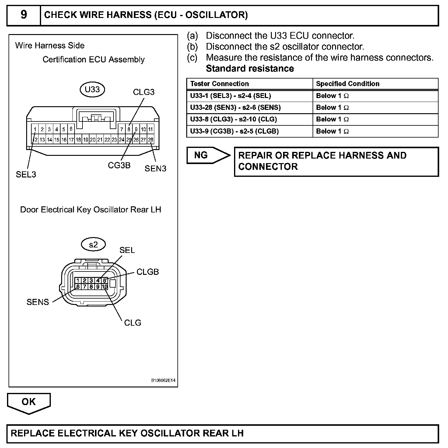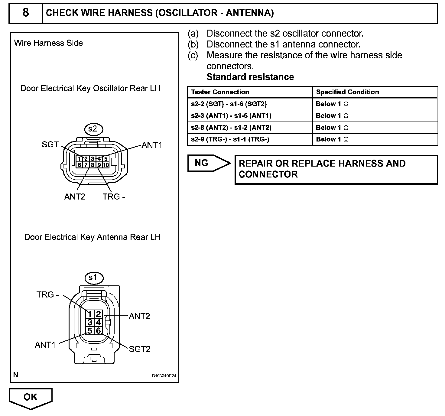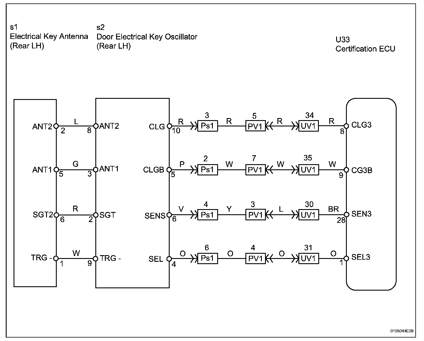 When an ID code from the door electrical key oscillator rear LH matches an ID code from the key, the multiplex network door ECU rear LH (rear door LH ECU) outputs a SEL signal (Lo when output) to the door electrical key oscillator rear LH, activates the touch sensor inside the outside door handle, and enters unlock standby mode. When the touch sensor is touched, the door electrical key oscillator rear LH sends a SENS signal (Lo when output) to the multiplex network door ECU rear LH (rear door LH ECU) and the multiplex network door ECU rear LH (rear door LH ECU) sends an unlock signal to the rear door LH lock.