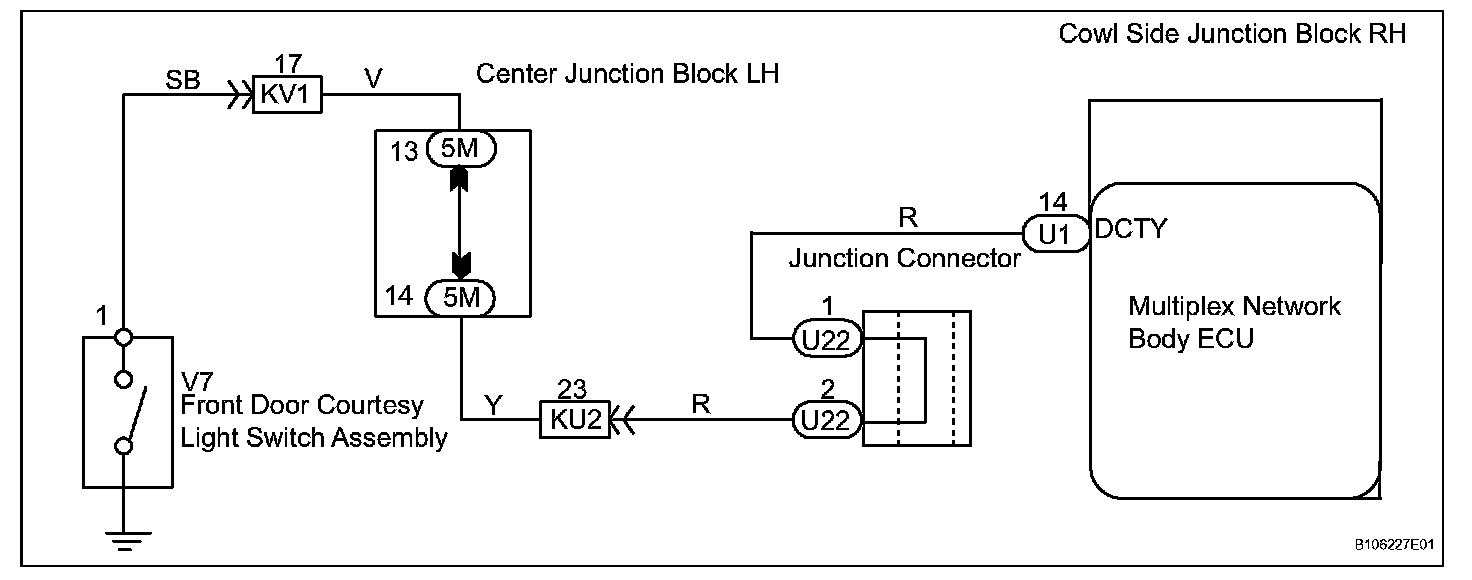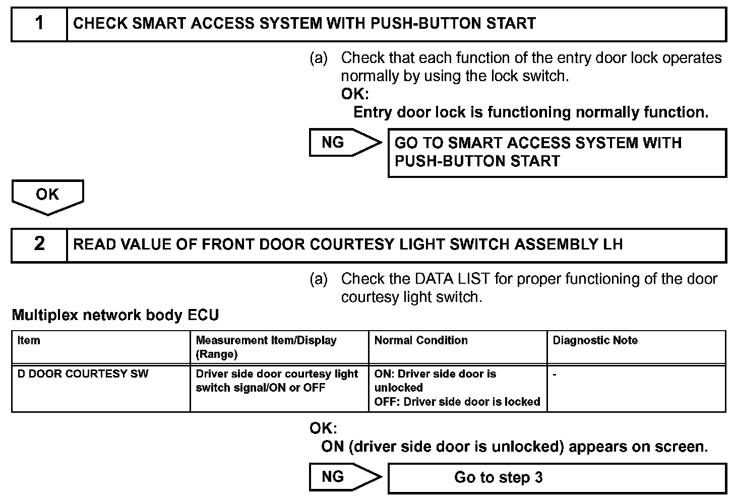 When the door control transmitter is in the vehicle or the door courtesy light ON signal is output to the ECU, performing the door lock operation with the lock switch on the outer handle will not lock the door.