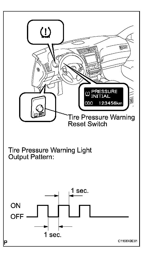 (b) Press and hold the tire pressure warning switch for 3 seconds or more so that the tire pressure warning light blinks 3 times.