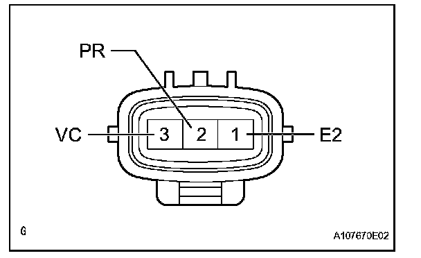 2. Measure the voltage between terminals 2 (PR) and 1 (E2).