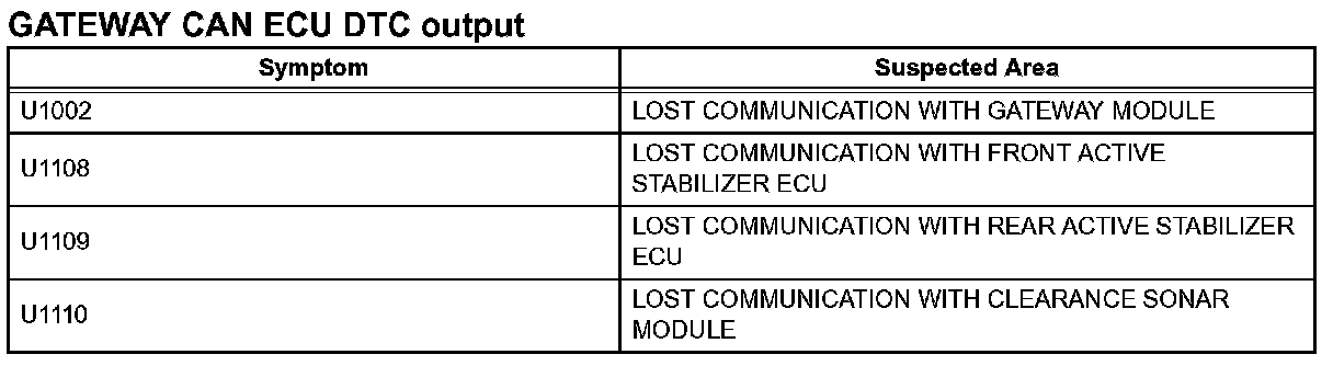 Problem Symptoms Table - Gateway Can ECU DTC Output: