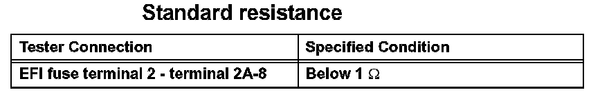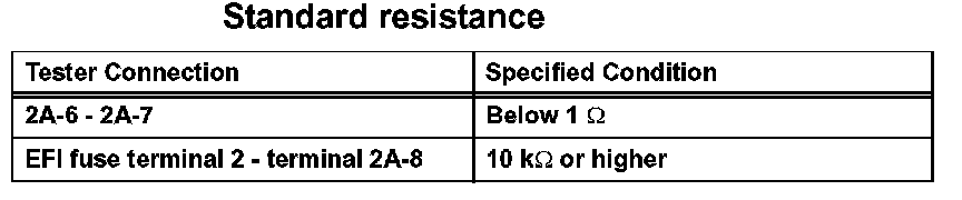 1. Remove the EFI fuse.Measure the resistance between the terminals.