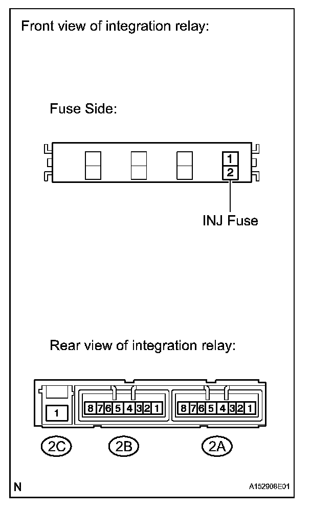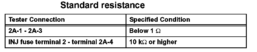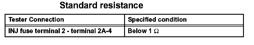 1. Remove the INJ fuse.Measure the resistance between the terminals.