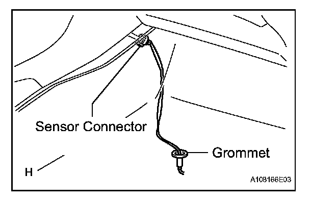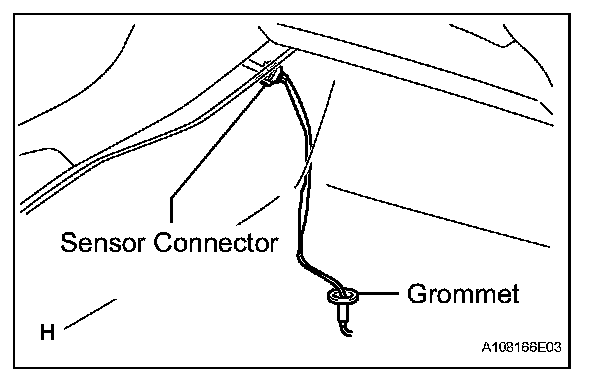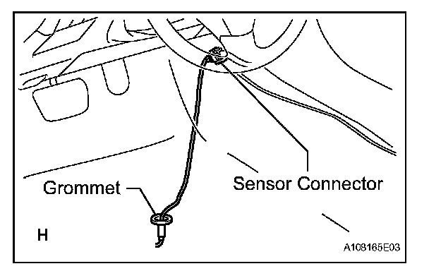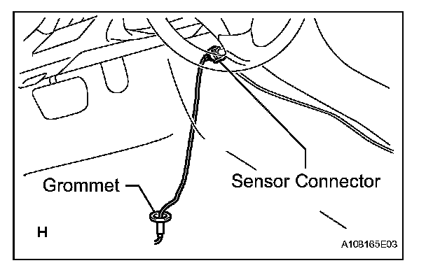 b. Pass the sensor connector through the floor panel and install the grommet.