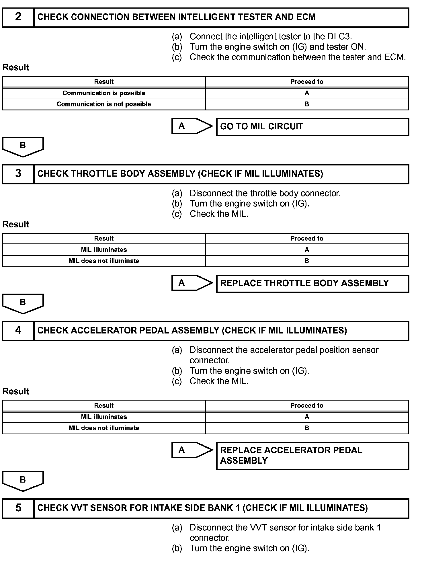 HINT: Under normal conditions, the MIL is illuminated for several seconds when the engine switch is first turned on (IG). The MIL goes off when the engine is started.