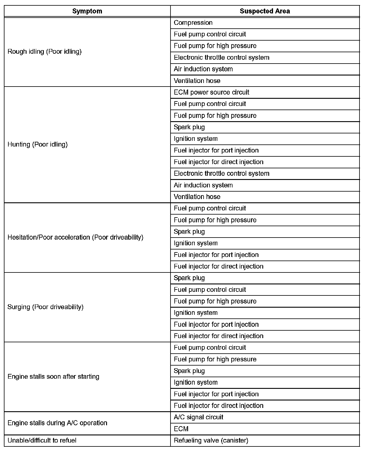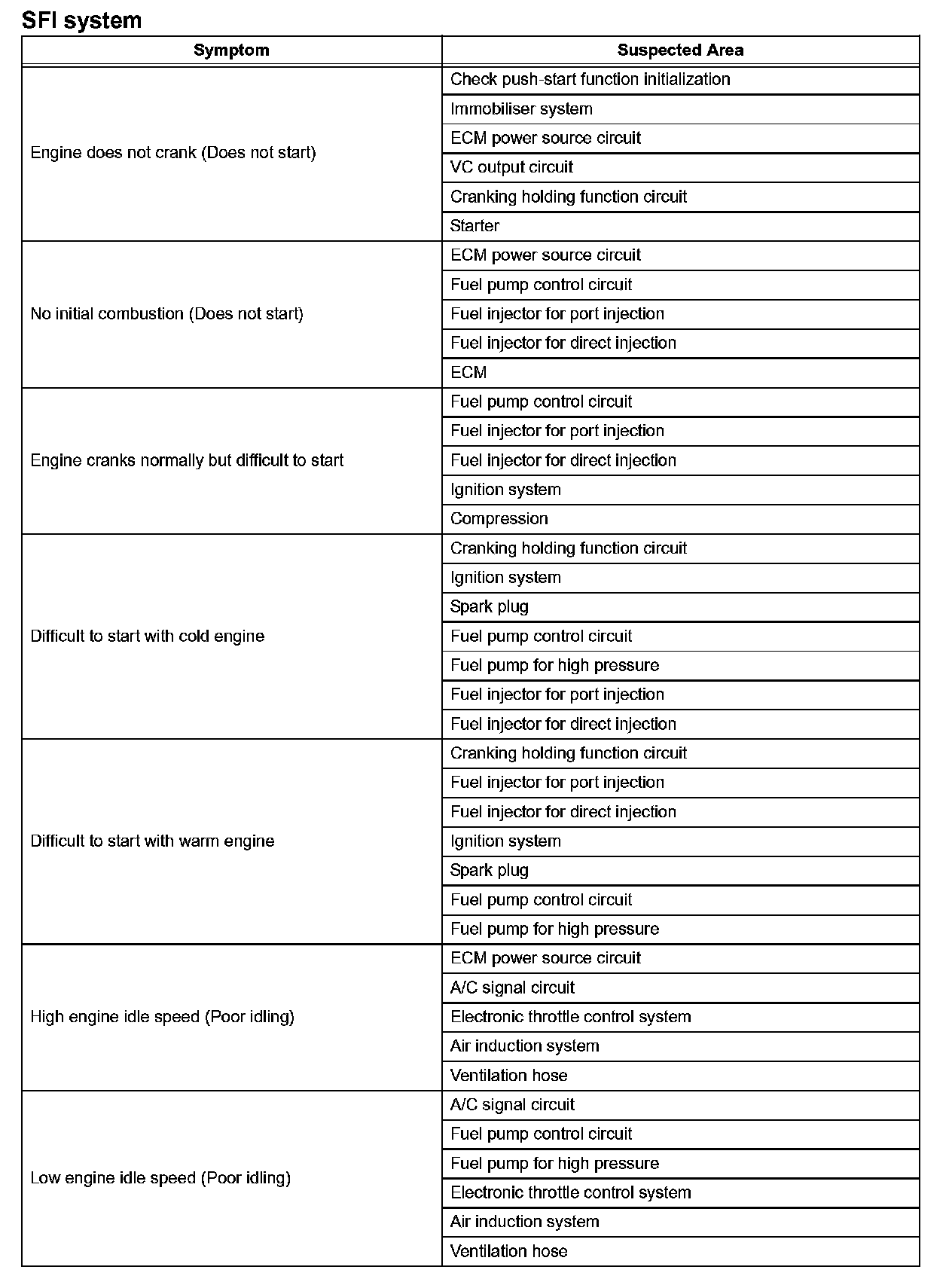Problem Symptom Table-SFI System (Part 2):