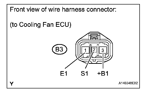 (2) Connect the battery to the cooling ECU at terminals 3 (+B1) and 1 (E1).