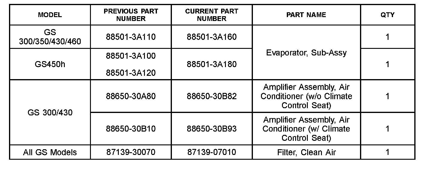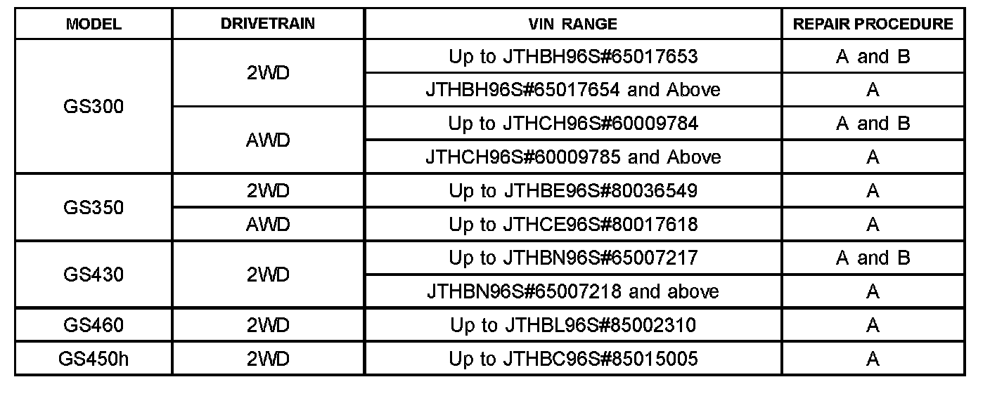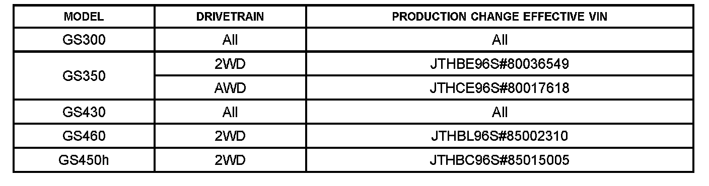 ^ Production Change Information has been updated to include GS 450h VIN break. Any previous printed versions of this service bulletin should be discarded.