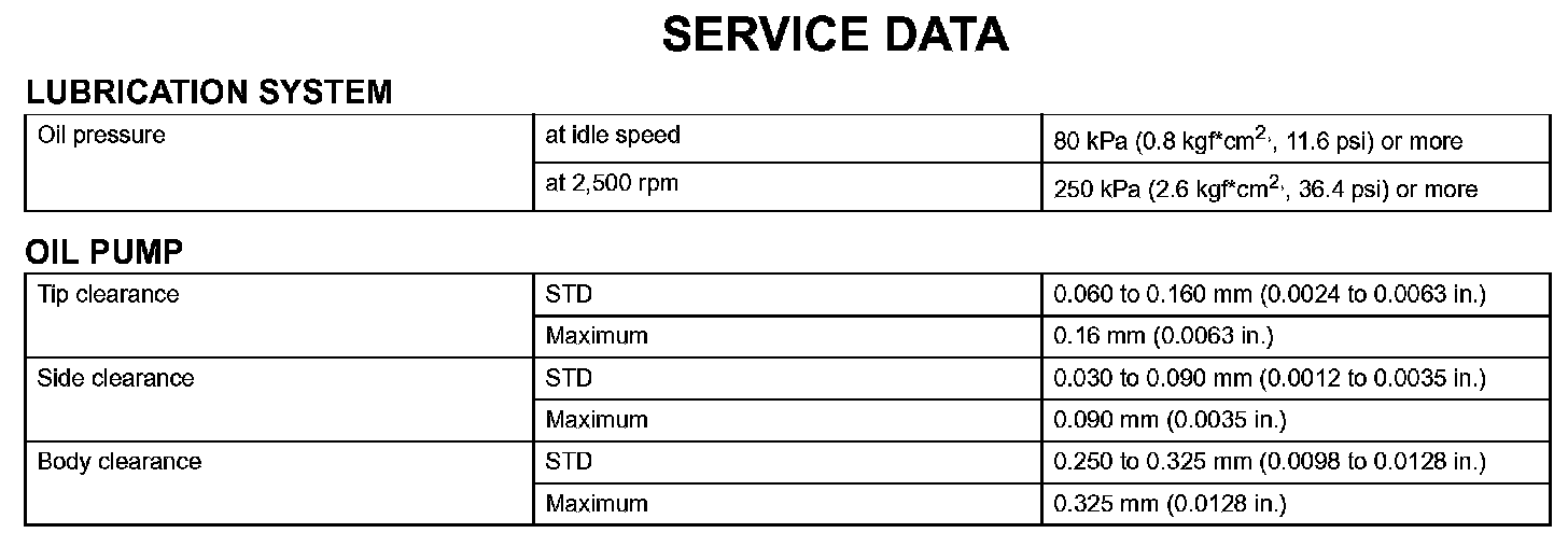 Lubrication - Service Data: