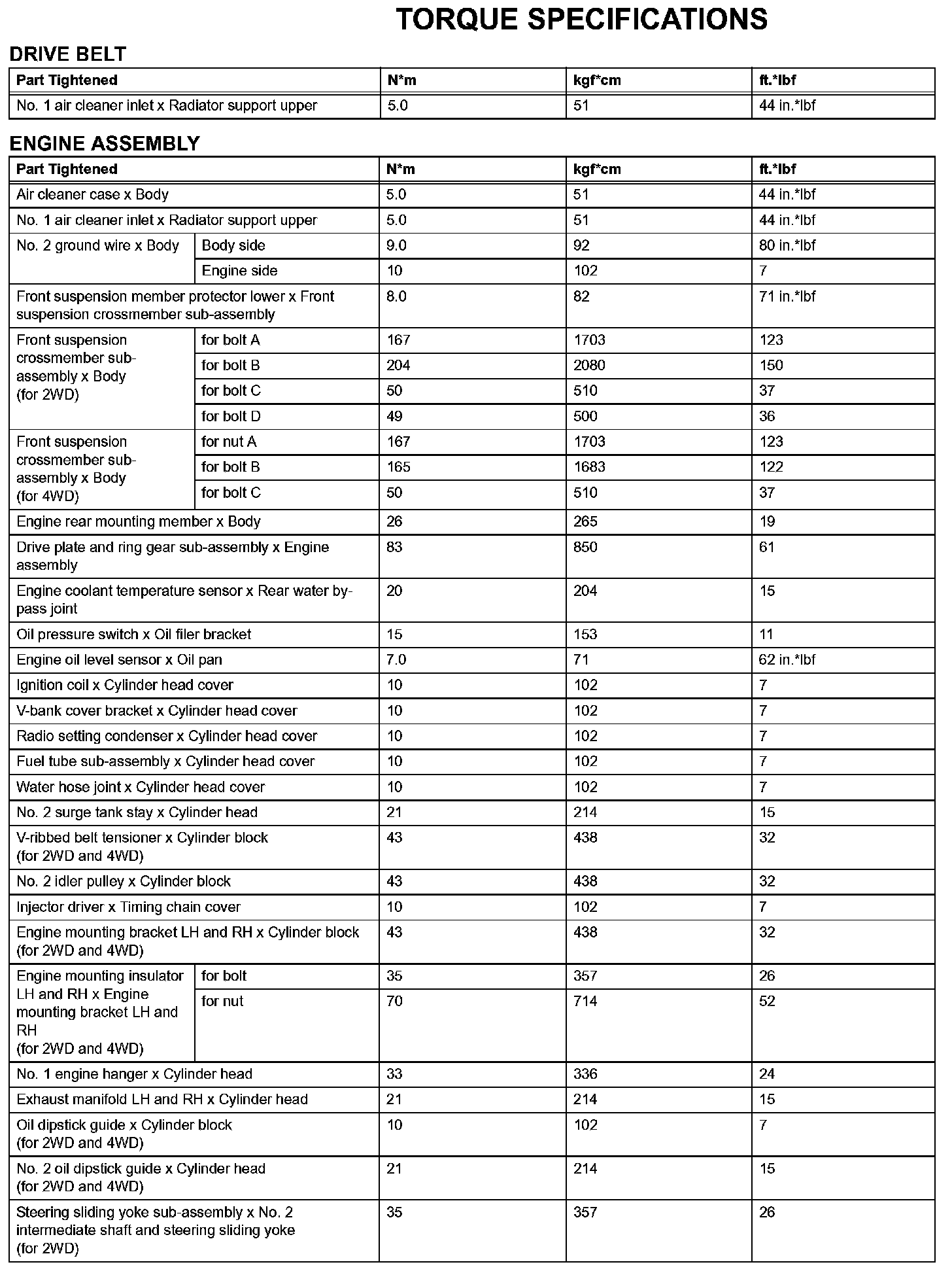 Engine Mechanical - Torque Specifications (Part 2):