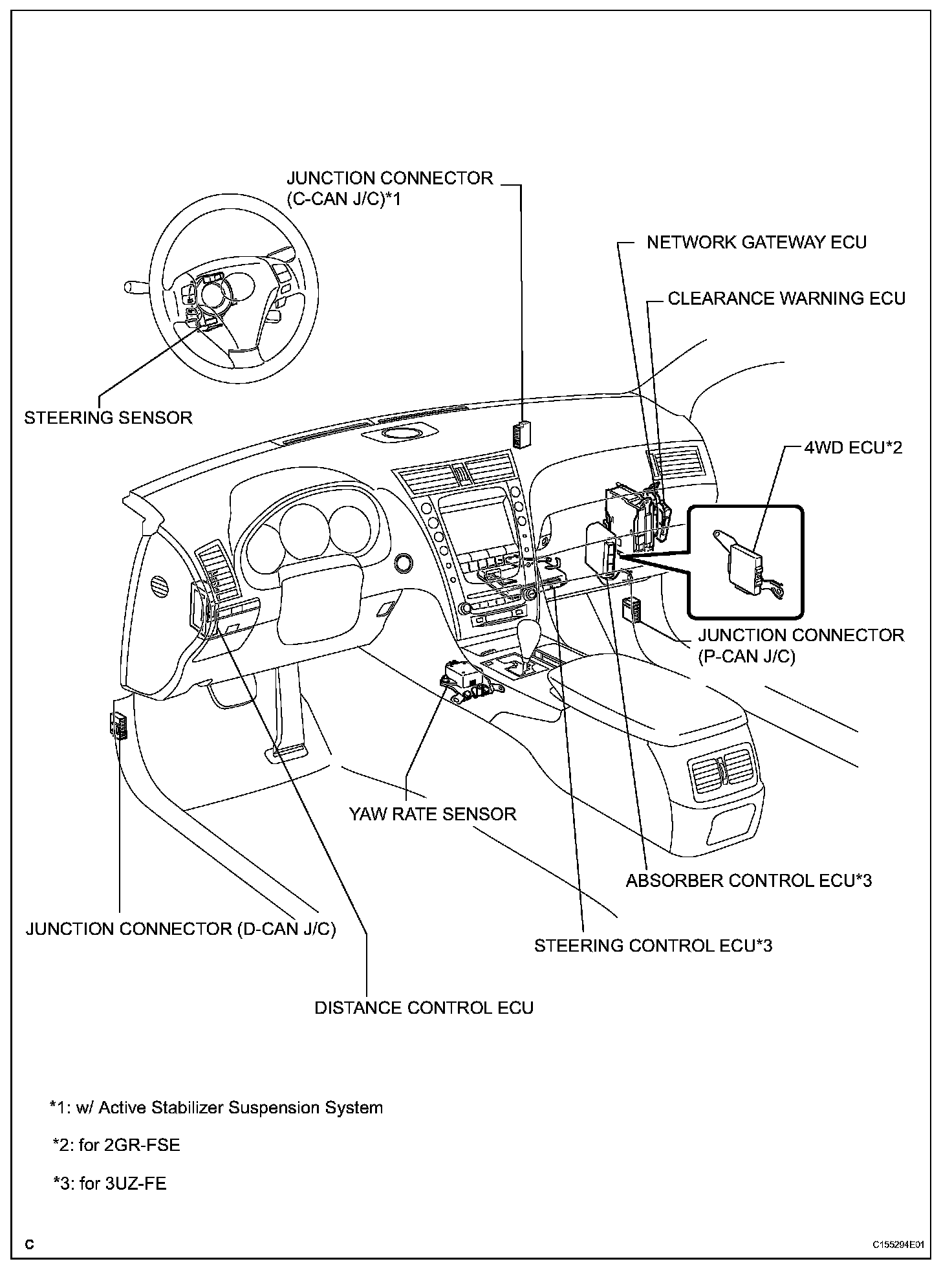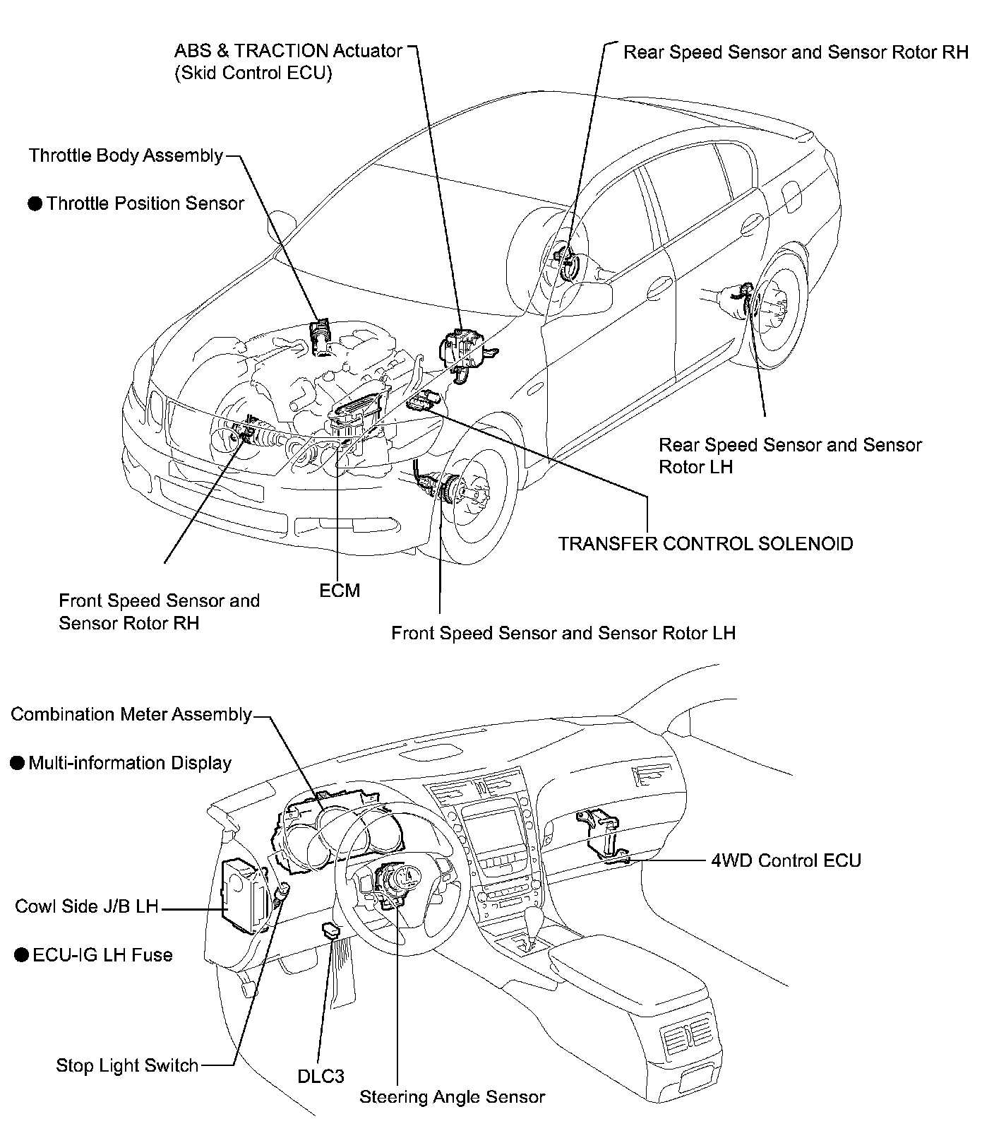 FOUR WHEEL DRIVE CONTROL SYSTEM PARTS LOCATION: