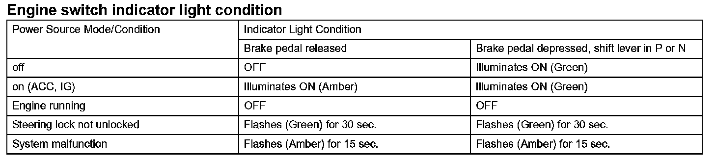 - The amber and green LEDs are for the indicator lights. The driver can check the present power source mode and whether the engine can start or not in accordance with the illumination state of the indicator light.