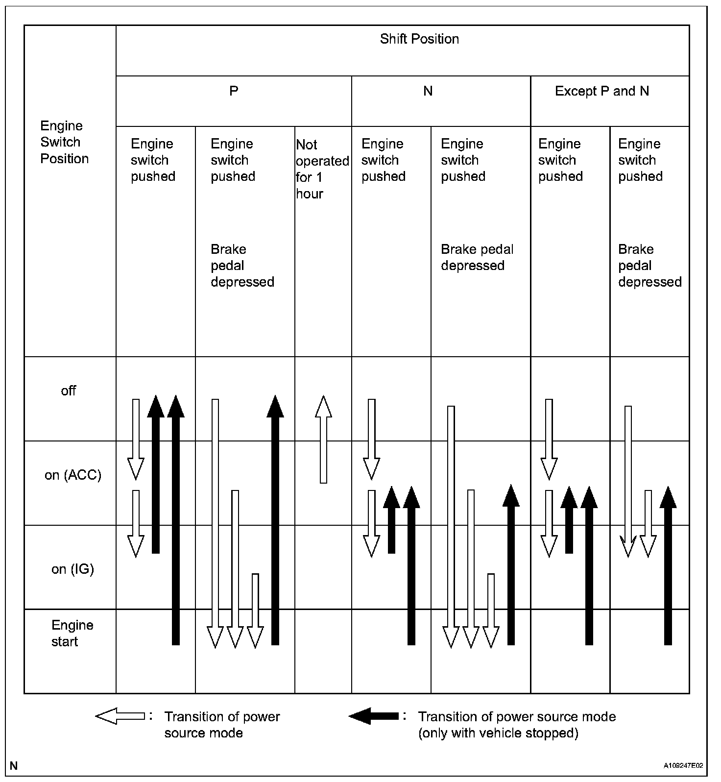 b. This system has different power source mode patterns depending on the brake pedal condition and shift lever position.