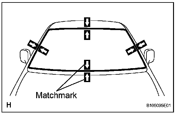 f. Place matchmarks over the glass and vehicle body on the locations indicated in the illustration.