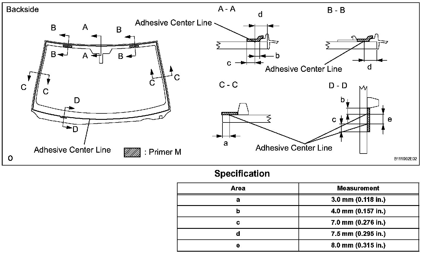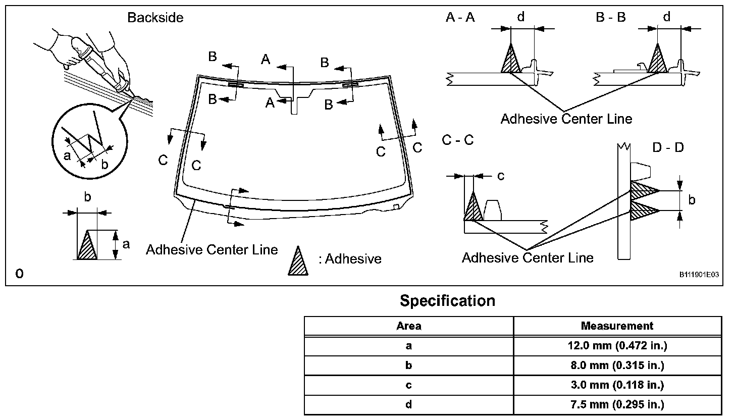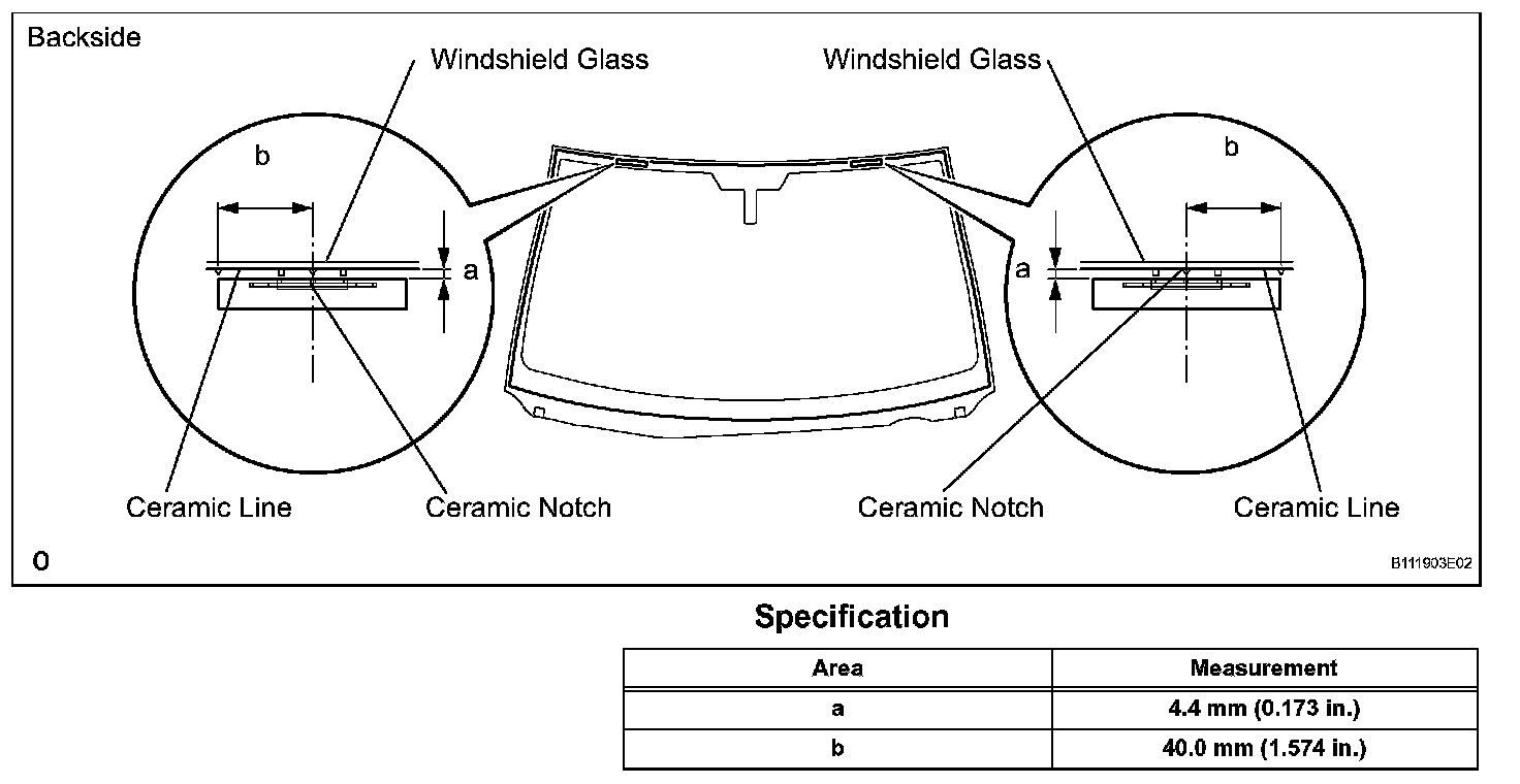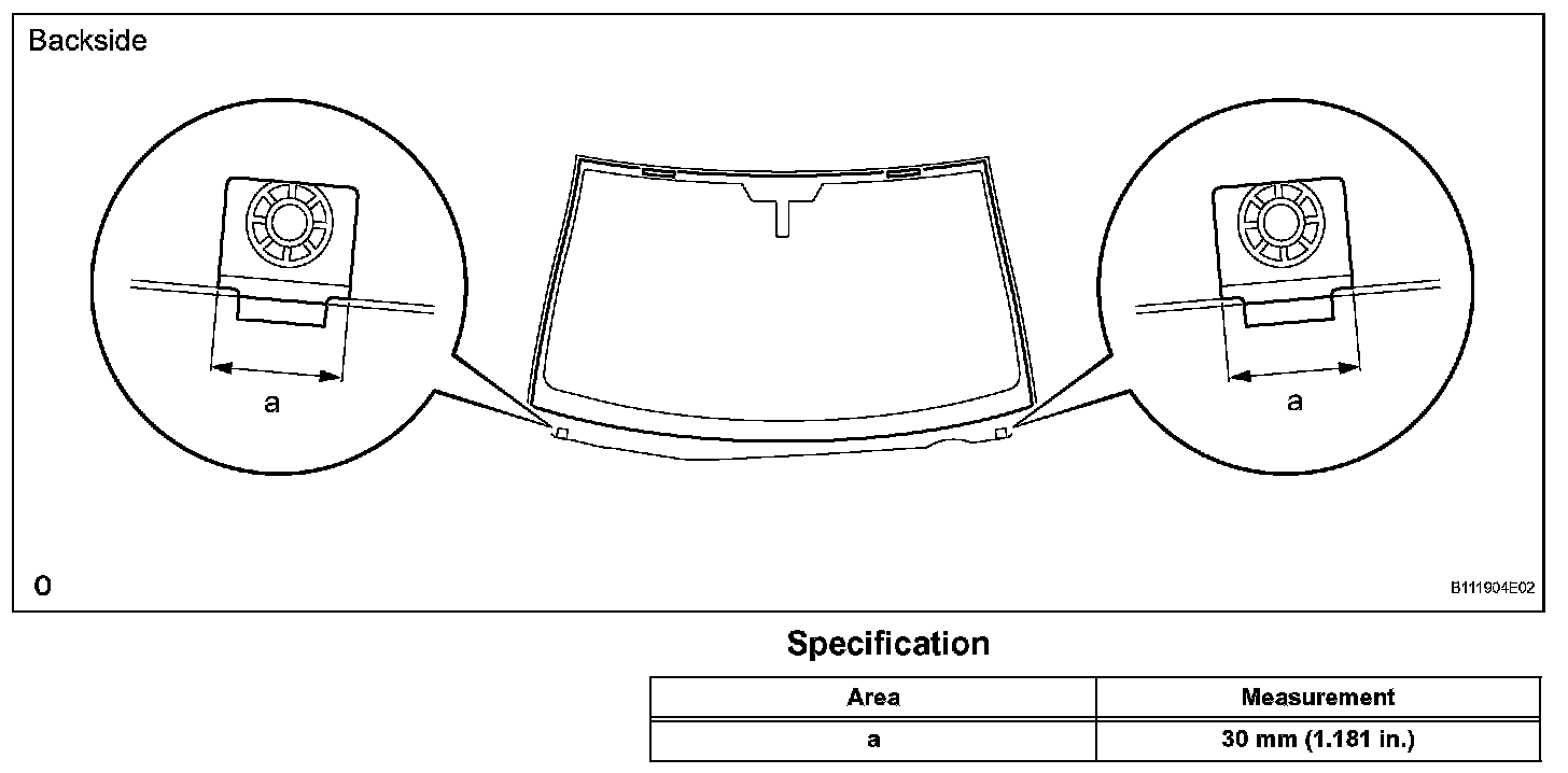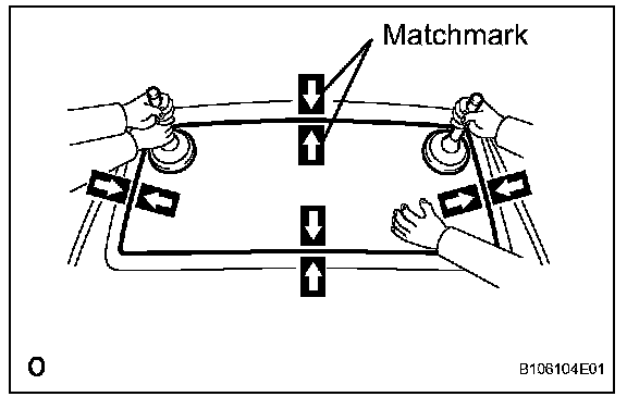 3. Place matchmarks on the glass and vehicle body on the locations indicated in the illustration.