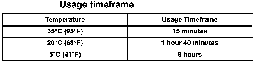 HINT: After cutting off the tip, use all adhesive within the time written in the table below.