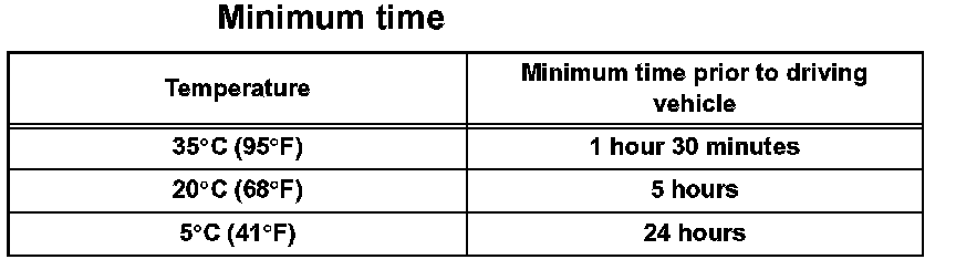 NOTICE: Do not drive the vehicle for the amount of time written in the table below.